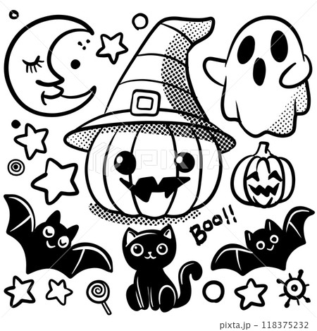 Kids Hand drawn Cute spooky Halloween elements
