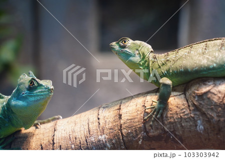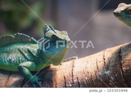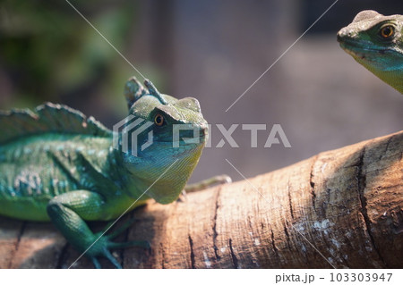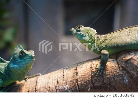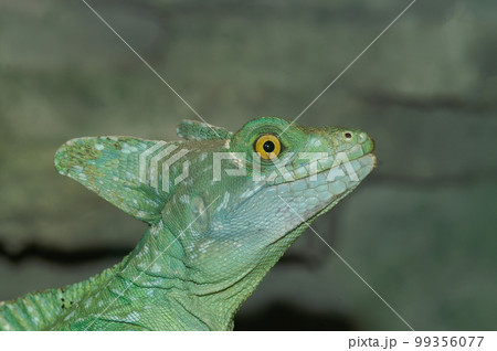 Portrait of green basilisk lizard.