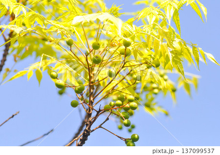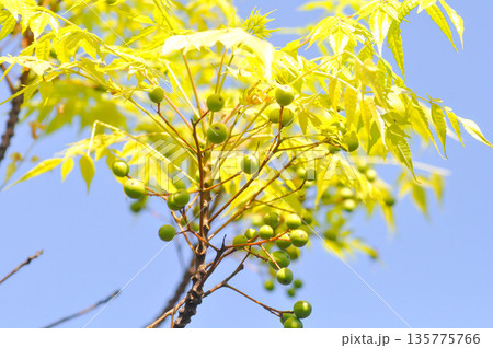 Bastard cedar, Bead tree or Hian or Khian or Krian or Lian or Melia azedarach L or Meliaceae or Persian lilac with fruit or seed