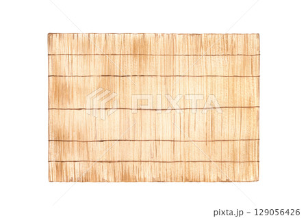 traditional Japanese bamboo mat or blind watercolor illustration isolated background. East Asian horizontal misu screen or sudare. Hand painted brown placemat for tableware sketch for menu design.