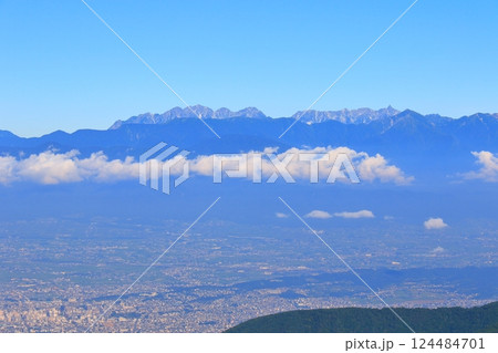 從八岳權現山山脊上看到的雲海、野邊山高原和五座山