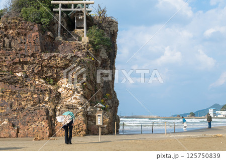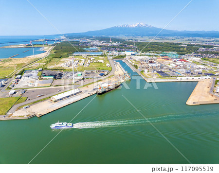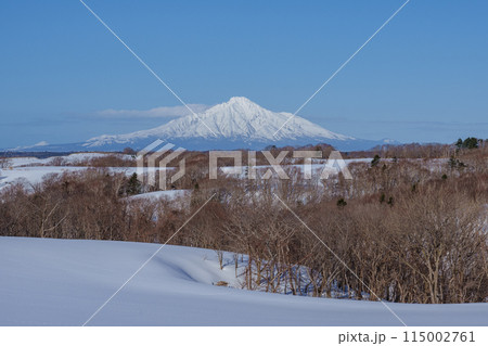 從日本平看到的遠處的富士山和庭園裡的樹木