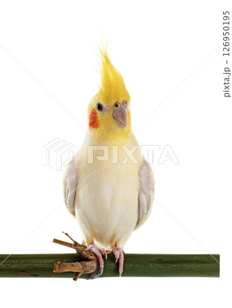 一隻可愛的玄鳳鸚鵡,有著黃色的羽冠和橘色的臉頰