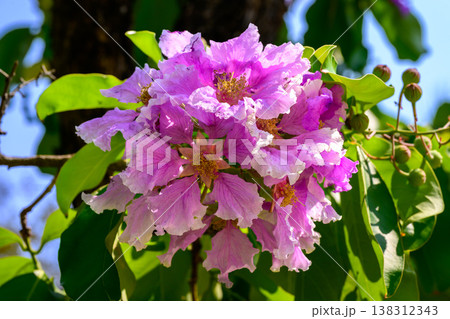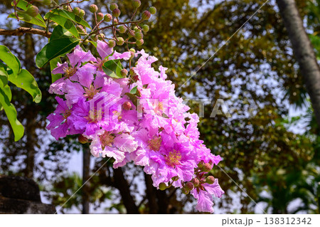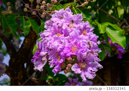 Queens Flower or Inthanin flower in Thailand, Queens crape myrtle, Pride of India, Jarul, banaba plant, Lagerstroemia speciosa, cheerful blooming in park.