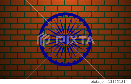 Ashoka Chakra Wheel Emblem on Brick Wall, Celebrating Indian Pride.