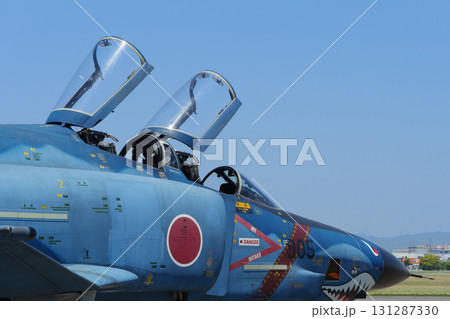 停機坪上懸掛著日本航空自衛隊紀念彩繪的RF-4E「鬼怪」II飛機