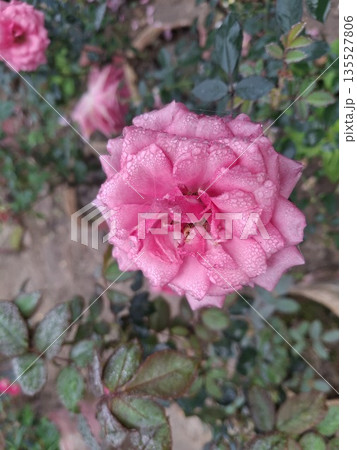 Pink Rose With Dew Drops in Garden-Closeup Bloom, Delicate Petals, Romantic Floral Photo