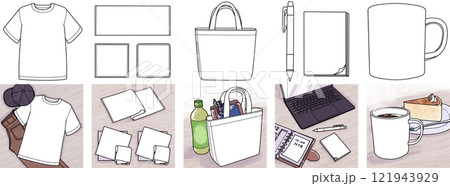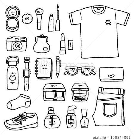 可愛的時尚、雜貨、化妝品和其他插圖集-線條圖