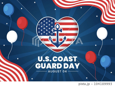 United States Coast Guard Day Vector Illustration on August 4 with American Flag and Ship Background in Flat Cartoon Hand Drawn Templates