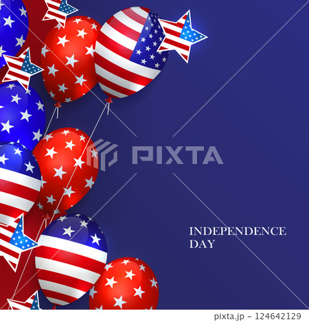 Fourth of July Independence Day Sale Banner Design with American Flag Pattern Party Balloon and Star Symbol on Blue Background. 4th of July USA National Holiday Vector Illustration with Typography