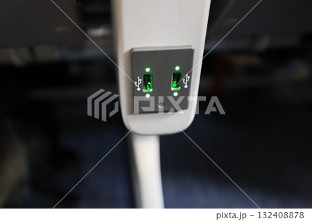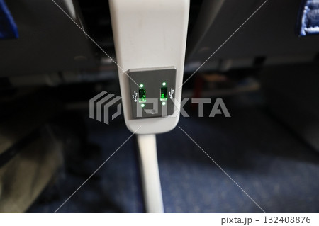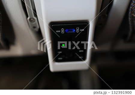 universal power socket European standard 220 volt with two connectors usb for charging mobile devices. socket white plastic on a white wall with copy space for text.