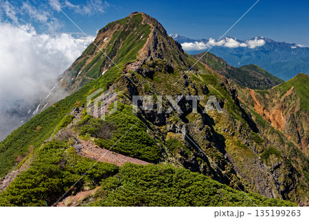夏季的南八岳,從赤岳文三郎嶺眺望阿彌陀山