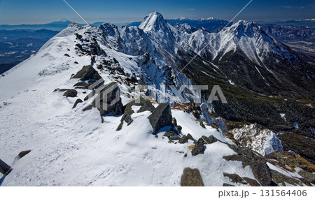 冬季從八嶽山脈的橫嶽山脊線看到的赤岳