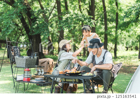 成熟夫婦在戶外露營烤肉烤肉家人同事朋友