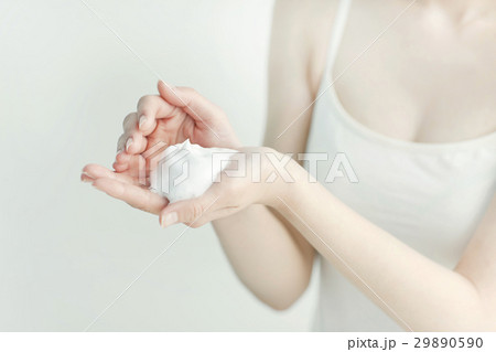 面部表情的泡沫和女性手部清潔·皮膚護理