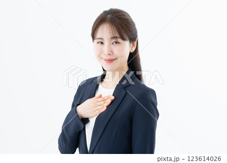 Business concept. A confident gesture by a female leader with leadership and innovative attitude.
