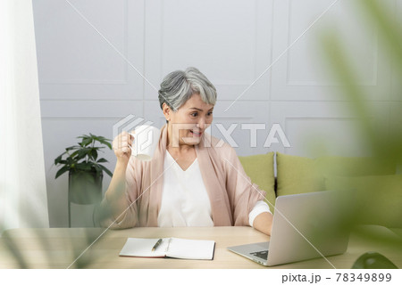 健康的生活方式。 微笑的亞洲成熟女性打鈴訓練。