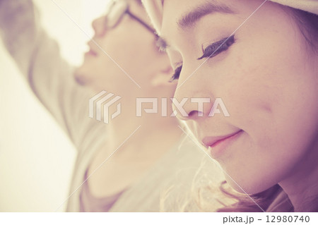 Young asian woman lesbian lovers sleep on bedroom.