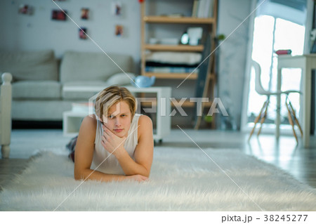 A male-male couple spends their free time happily doing holiday activities together, embracing each other and taking selfies together in the living room.