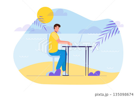 Workcation, work and vacation at remote concept. Vector illustration