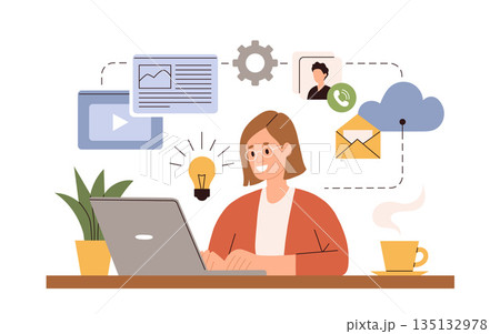 Woman Working At Home Illustration concept. A flat illustration isolated on white background