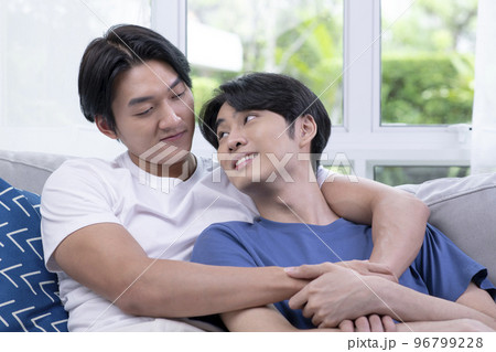 Asian LGBT gay couple love moments happiness concept