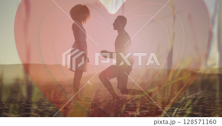 Romantic Illustration of a Couple Holding a Heart with Floral Background