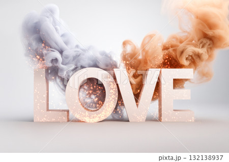 Colorful smoke swirls enveloping the word love in a creative display, showcasing vibrant hues and artistic flair in a modern design concept