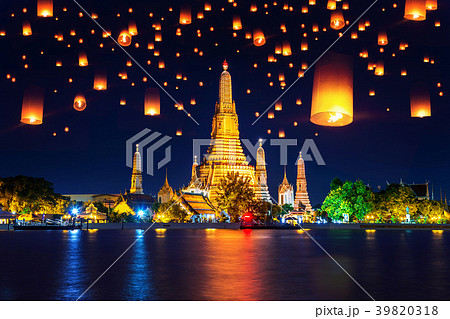 Beautiful Pagoda with reflection, Wat phra that doi suthep temple in Chiang mai thailand, the most famous temple at twilight, Yi Peng and Loy Krathong (Lantern Festival).