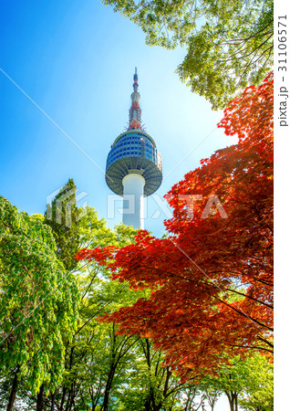 從韓國首爾明洞市中心看到的 N 首爾塔
