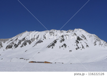 雷鳥澤的剩餘雪季路線上可欣賞立山山脈的景色。在剩餘雪季攀登北阿爾卑斯山的立山和別山