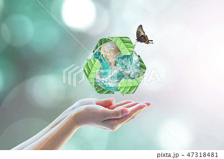 Ecology concept with green city on earth, World envirolmental and ecology friendly concept