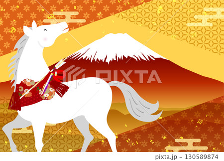 富士山與奔馬剪影,2026年賀年卡(限祝賀訊息)