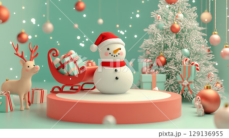 用雪人和馴鹿裝飾的夢幻聖誕舞台