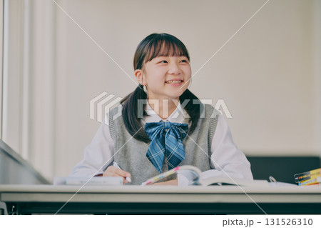 asian girl female teenager studying at school.
