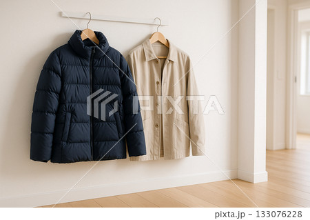 以線條勾勒出的冬季外套插圖,線條呈現斷線狀