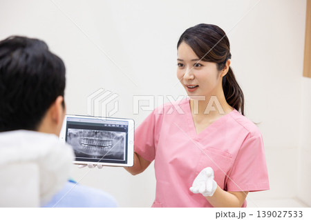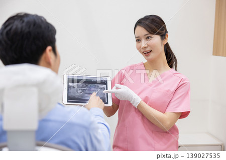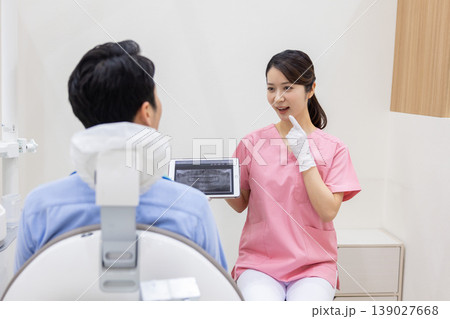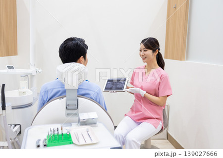 牙醫一邊解釋一邊展示平板電腦