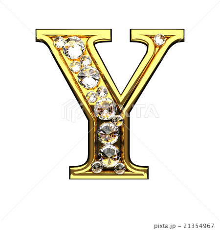 y isolated golden letters with diamonds on white