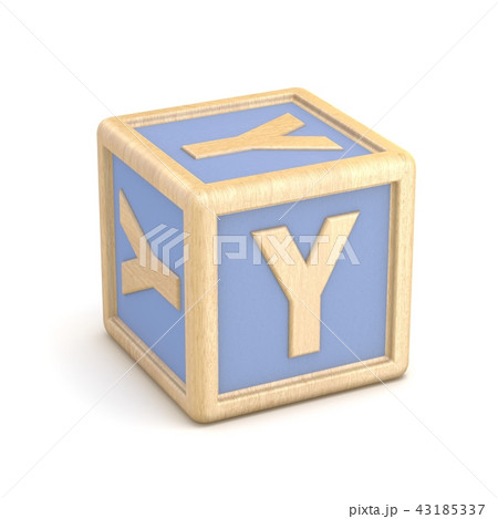 Letter Y wooden alphabet blocks font rotated. 3D